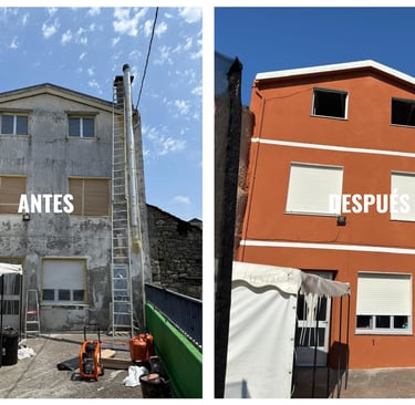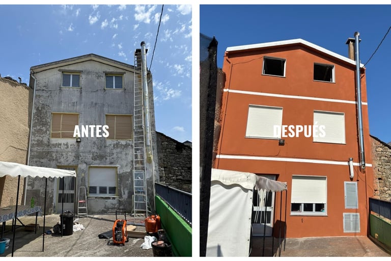 A fachada recuperou unha aparencia renovada e quedou protexida fronte á humidade, filtracións e deterioro exterior.